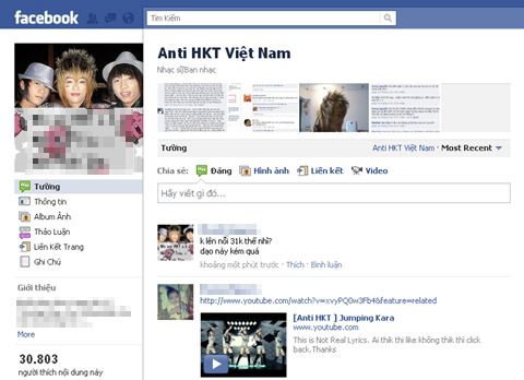 Hàng loạt fanpage của anti-fan HKT được lập lên. Có lẽ dù trong tưởng tượng, ba thành viên của HKT cũng không thể ngờ mình lại có số lượng người phản đối đông đến thế. Hay biết đâu, với họ, ngay cả tình tiết này cũng là đáng… mừng bởi quan trọng nhất là được người ta biết đến, cho dù là biết đến để… ghét. Hàng chục fanpage trên facebooks đòi HKT phải giải tán từ khắp các tỉnh thành Sài Gòn, Hà Nội, Quảng Ninh, Huế, Nghệ An, Gia Lai...